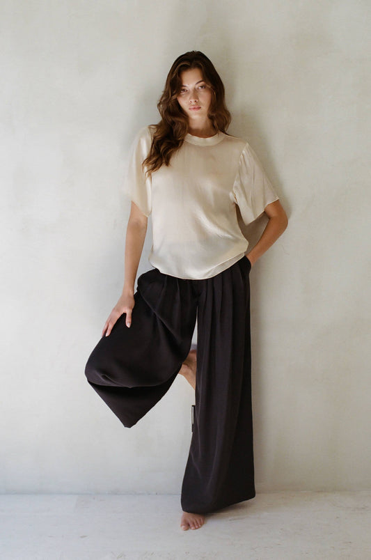 AR1045 | Woven 100% Silk Round Neck Short Sleeve Top