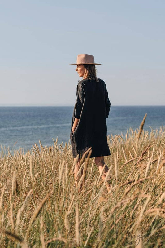 Relaxed fit linen dress Aruba in Black