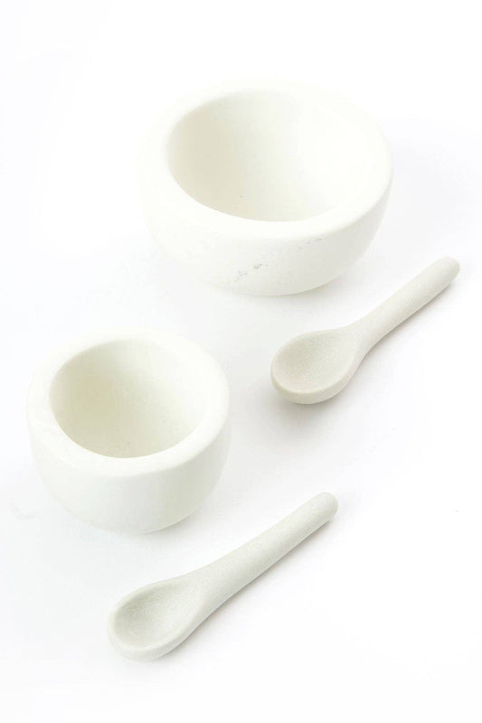 SET OF 2 White Soapstone Salt Cups and Spoons