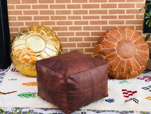 Pouf Moroccan leather pouf, Moroccan Ottoman pouf