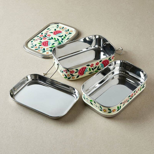 Tiffin Style Lunch Box | Pink & Ivory Flowers