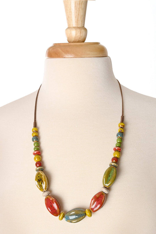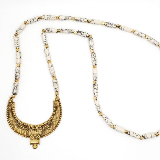 Ceramic and Brass Beaded Tribal Crescent Necklace