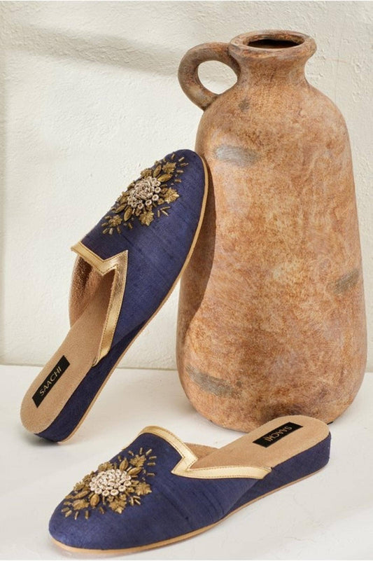 Sequined Floral Velvet Slides