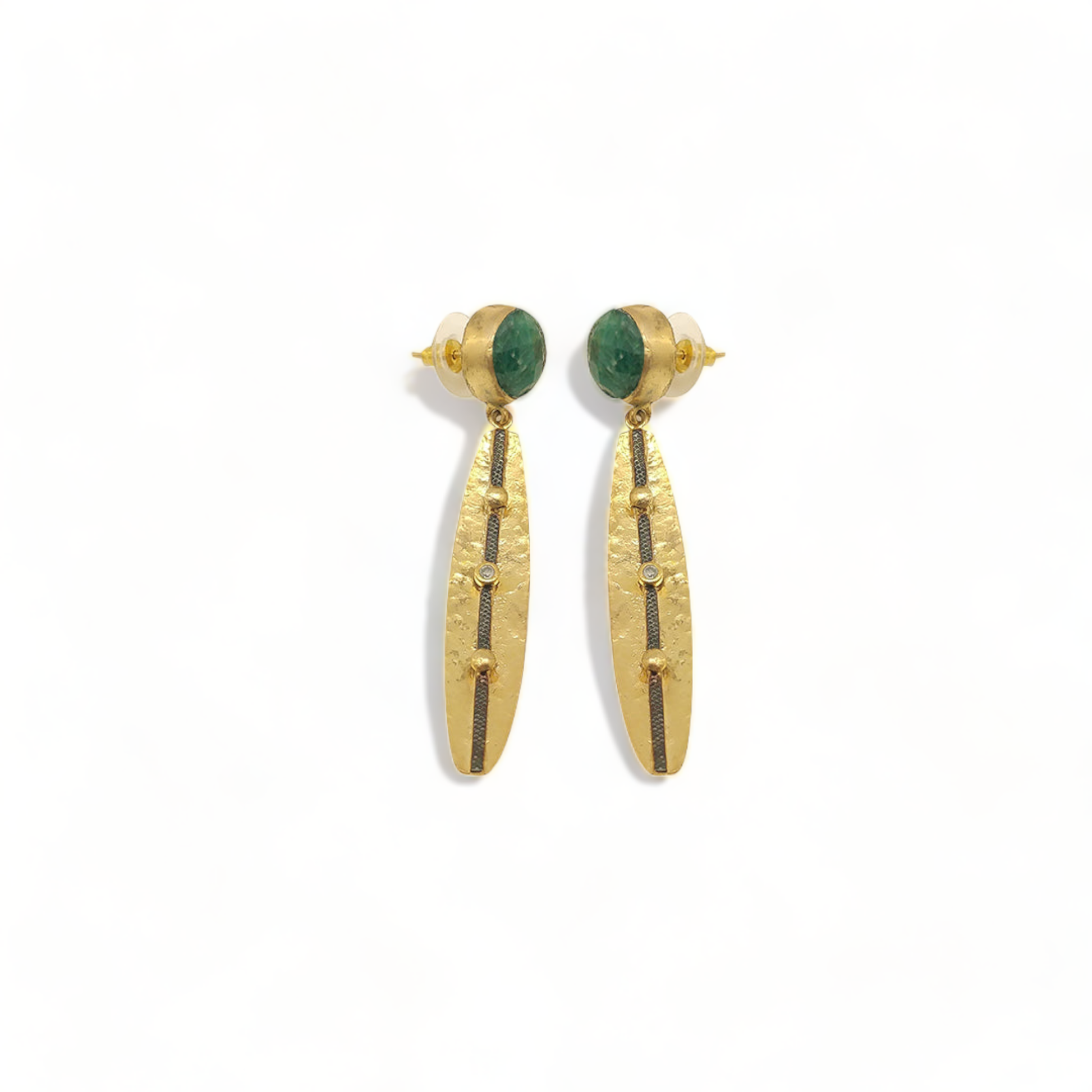 Radiant Beauty: Gold-Plated Handmade Earrings with Emerald Corundum and CZ Stones. it doesn't tarnish and nonallergic. Step into the world of timeless elegance and artisan craftsmanship with our Gold-Plated Handmade Earrings. These are more than just earrings; they're an embodiment of creativity, each pair meticulously crafted to celebrate the enchanting allure of emerald corundum and CZ stones, elegantly adorning a contemporary design.