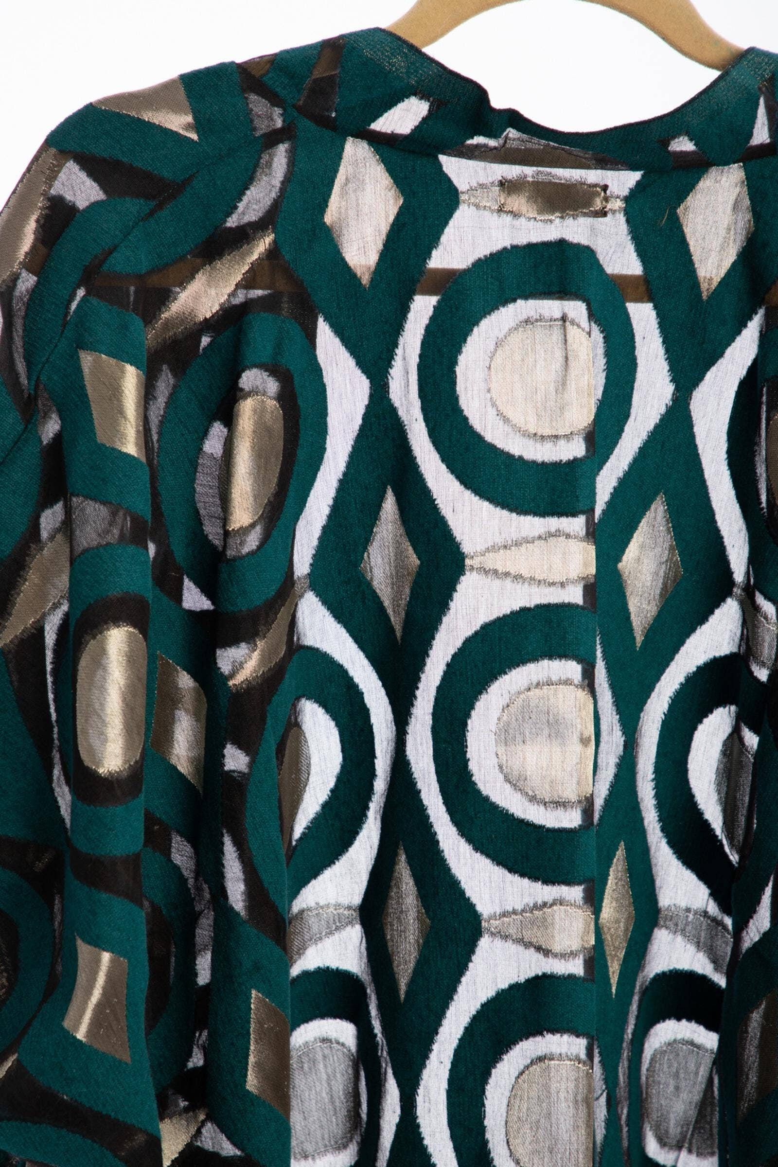 Discover our Geometric Cotton Short Open Poncho. This geometric cotton poncho is soft, lightweight, and perfect for layering. The geo pattern & flowy design flatters all body types and pairs well with high-waisted jeans or leggings. Perfect for all-season layering.