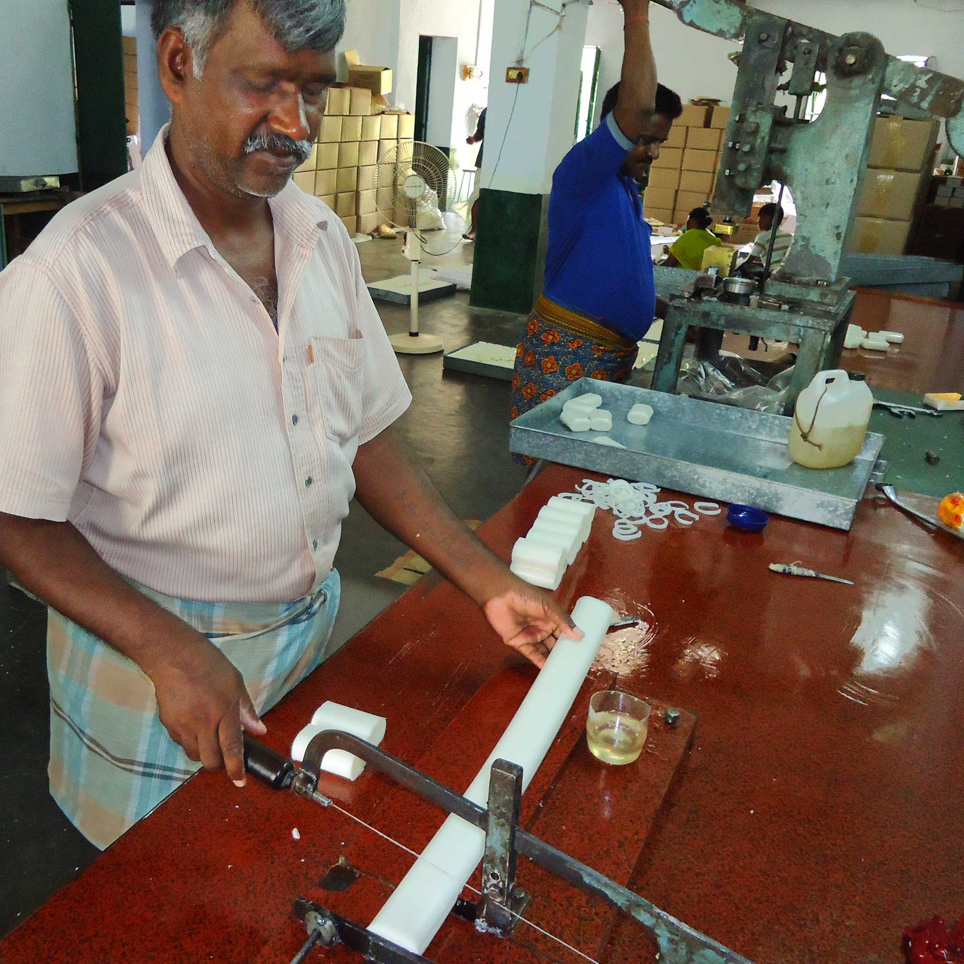 Handcrafted in India by the master soap makers of Palam Rural where one bar of soap sends one child to school for one day.