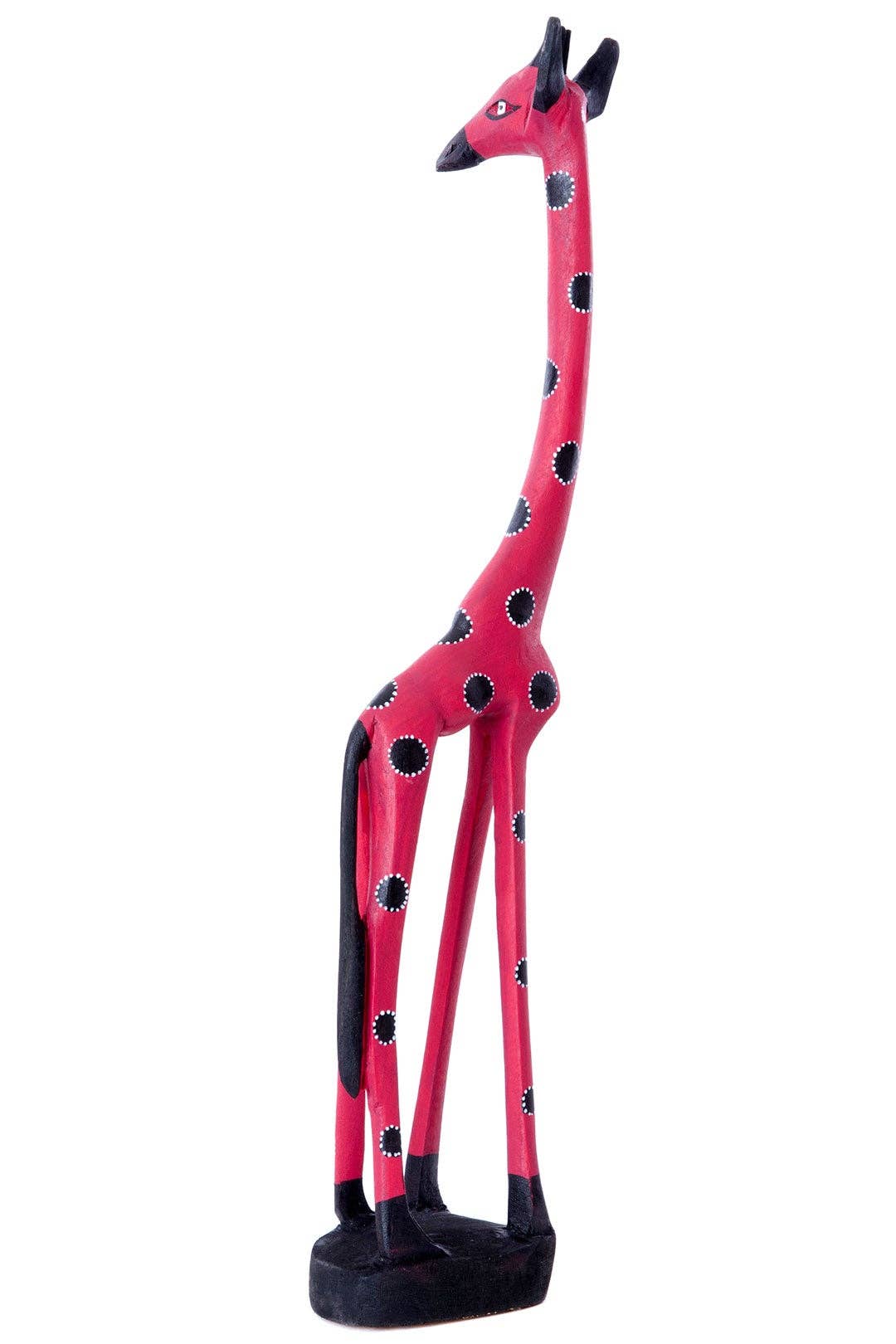 These bold giraffe sculptures showcase the talent of Kenyan wood carvers and painters. Using sustainably-sourced jacaranda wood painted with acrylic, carvers create classic safari-themed folk art with a modern twist.