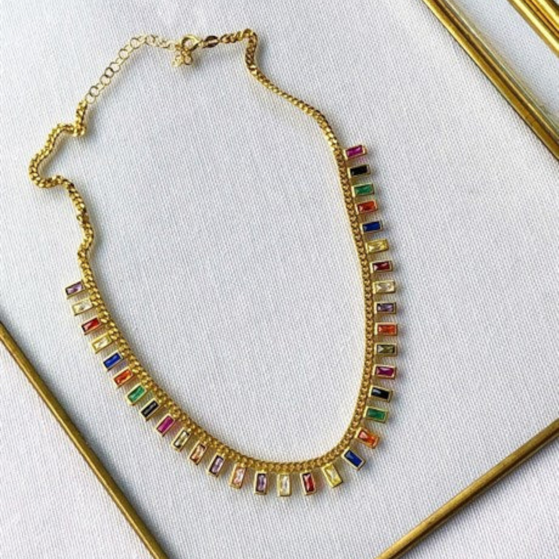 Multicolor Baguette Sterling Silver Necklace
