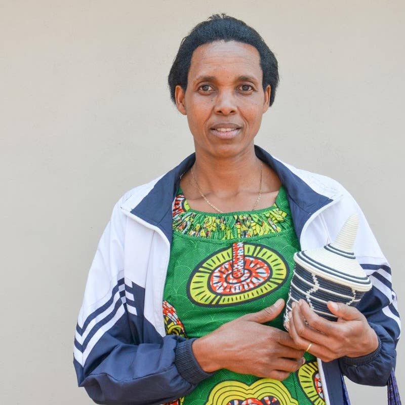 Place the Boutique Shimmy Sisal Peace Basket on your bookshelf for a contemporary accent or give her to a friend...either way, you can't go wrong with this modern twist on a traditional Rwandan custom. Check out the design block which served as expert artisan weaver Philomene's (pictured) inspiration for this basket in the photo gallery!