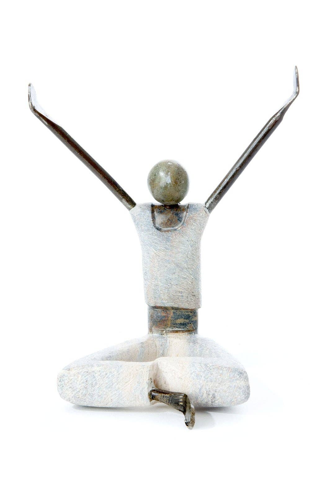 Stone and Metal Yogi Sculpture with Outstretched Arms