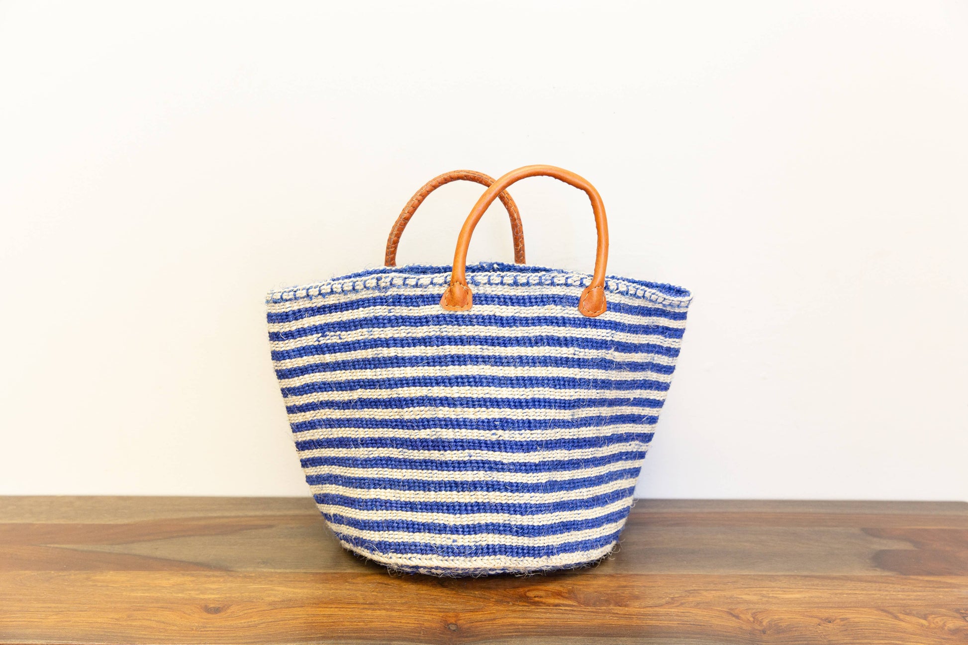 Our fair trade Wilma woven tote bag is beautifully hand dyed and handwoven from sisal (cactus) fiber and comes with sturdy leather handles.