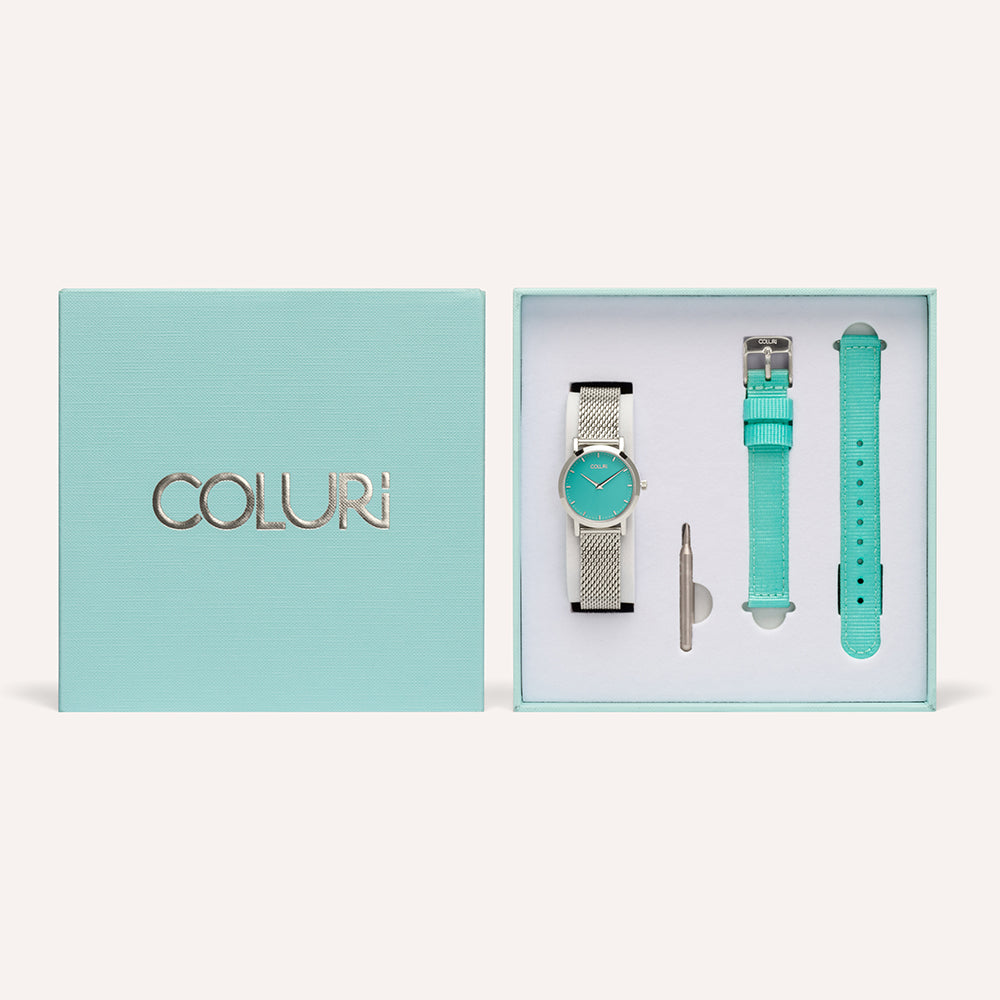 Beautifully presented in a luxury gift box, with a 10-year warranty, SWISS movement and 5ATM water resistance, it’s the perfect gift for colour lovers.
